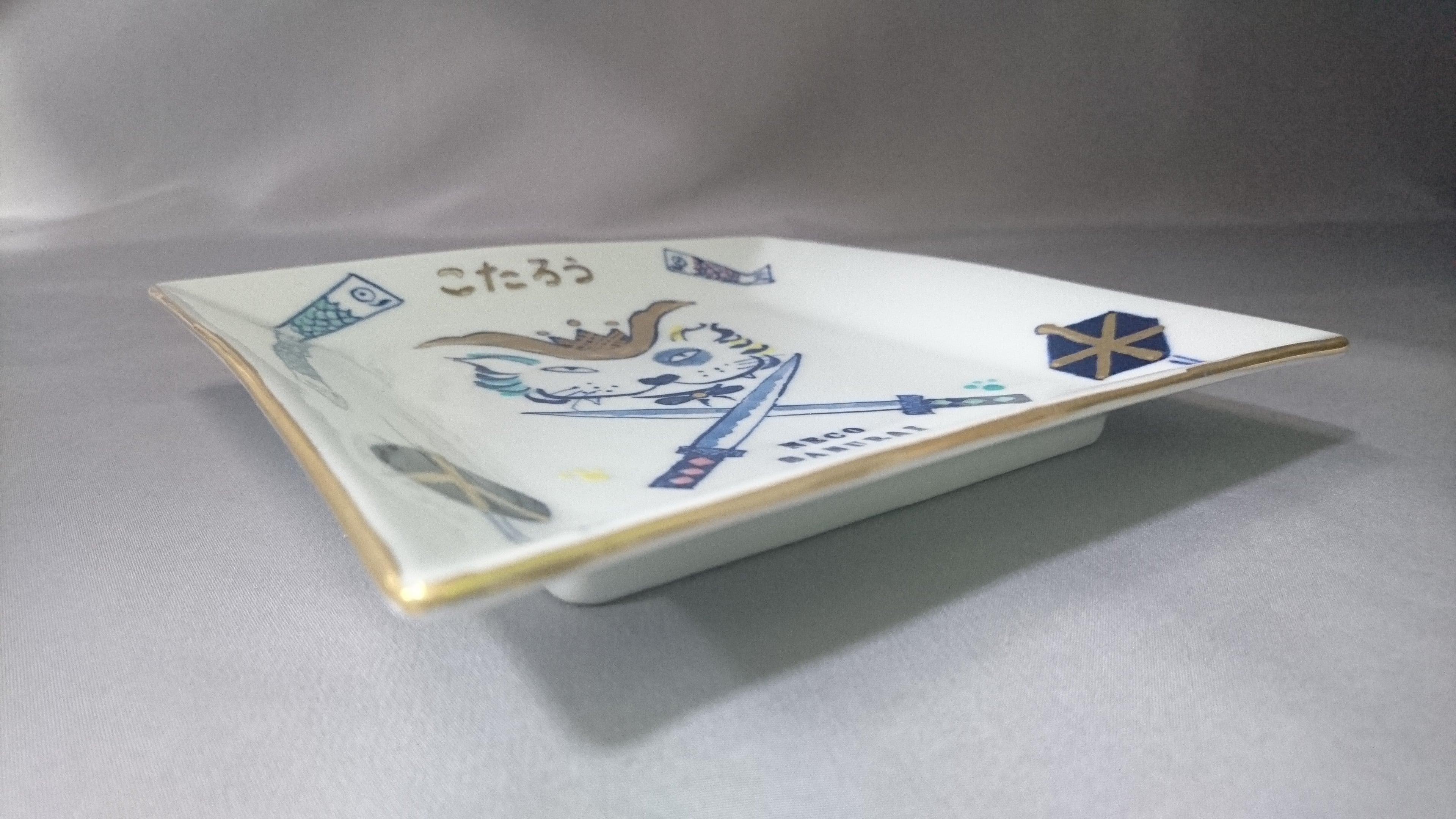 染錦NECO SAMURAI額渕正角16.5㎝皿(名入り)